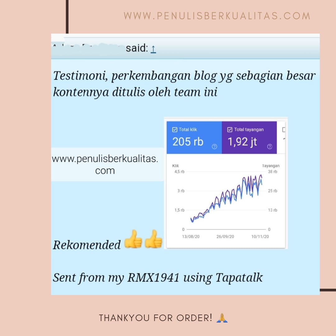Sudah dipercaya oleh client-client kami. Bahkan banyak yang reorder. Jasa content writer memang harus dipilih yang terbaik dan jujur. Transaksi dengan kami dijamin 100% aman. Kami menerima berbagai pilihan BANK. Silahkan untuk detail bisa langsung chat. Jadi bebas biaya transfer antar bank. Kamu bisa mendapatkan artikel yang berkualitas dengan kualitas content yang pastinya melampaui ekspektasi kamu.